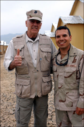 Ermey listened closely as Sgt. 1st Class Shayne M. Simmons, an ANA weapons trainer, explained all the details about the weapon. “Great!” said Ermey excitedly after Simmons completed his explanation. “Do you think I could fire this weapon?” “Sure!” said Simmons. “Let’s load it up!