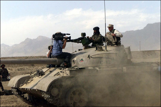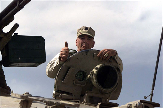 After sending a few more rockets down range, Ermey tried his hand on an SPG-9, 73 millimeter Recoilless Rifle and a Russian-made ZU 23-2 Anti-Aircraft gun. He ended the taping that afternoon by riding with ANA soldiers in their T-62 tank as a crowd of soldiers watched.